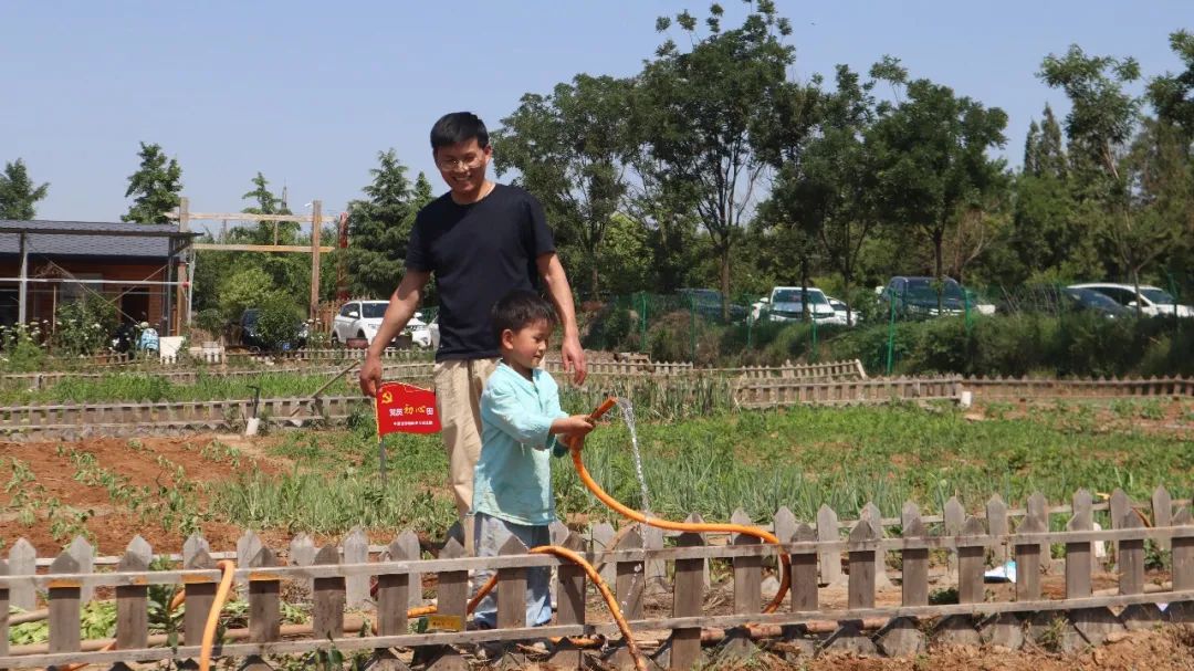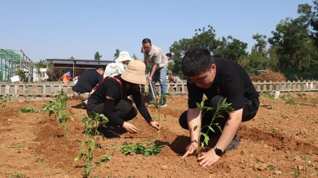 同志們分工協(xié)作,在有經(jīng)驗(yàn)的老同志指導(dǎo)和示范下,依次開展松土、起壟、插秧、澆水、培土等工作。汗水滴灑在泥土里,歡聲笑語回蕩在空氣中。活動中,還有不少黨員帶著孩子來到現(xiàn)場,讓祖國的下一代在了解種菜過程的同時,體驗(yàn)勞動果實(shí)的來之不易。
